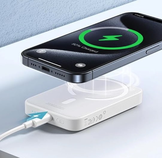 - ✅【Kompakt und Tragbar】Diese magsafe Powerbank für iphone ist fast kreditkartengroß und passt problemlos in Ihre Tasche. Die weiche Silikonoberfläche schützt Ihr Telefon vor Kratzern. Größe: 9,74 x 6,38 x 1,47cm.