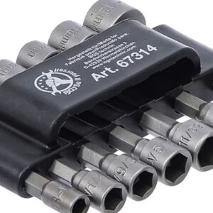 - 7 Steckschlüssel, Antrieb Außensechskant 6,3 mm (1/4″), Sechskant SW 3/16″ – 1/4″ – 9/32″ – 5/16″ – 11/32″ – 3/8″ – 7/16″