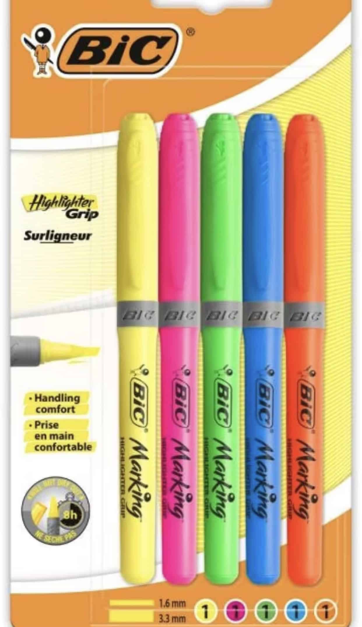 Derzeit bekommen Amazon Prime Mitglieder folgendes Angebot: BIC BRITELINER Grip Textmarker – 5 Stück in verschiedene Farben für 2,86€