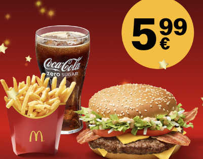 Der Adventskalender von McDonalds bietet heute ein Big Tasty Bacon McMenü Small für 5,99€ anstatt für 8,39€.