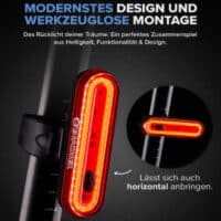 Die Kunden sind mit der Helligkeit und Funktionalität des Rücklichts zufrieden. Sie beschreiben es als super klein, gut sichtbar und die Bremsfunktion als zuverlässig. Das Produkt wird als solide und von hoher Qualität beschrieben. Die Montage wird als unkompliziert empfunden, da das Rücklicht problemlos an den Radträgern oder Sattelstütze montiert werden kann. Der Preis-Leistungs-Verhältnis und die Aufladung werden ebenfalls gelobt. Bezüglich der Akkulaufzeit gibt es jedoch gemischte Meinungen.