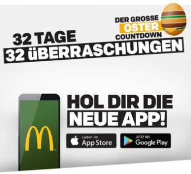 Bei McDonalds gibt es am morgigen Mittwoch, 28.02. im Rahmen des Oster Countdowns einen Cheeseburger für 1,- Euro.