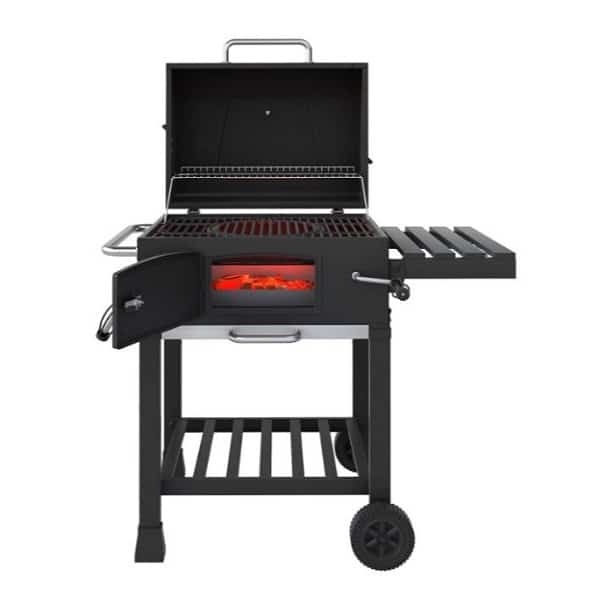 Die Kohlenwanne kann durch eine Tür an der Front des Grills beladen werden, was auch ein Nachlegen von Grillkohlen oder die Verwendung verschiedener Aromahölzer während des Betriebs ermöglicht.