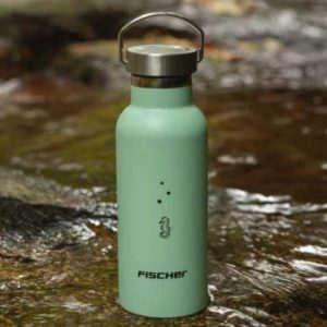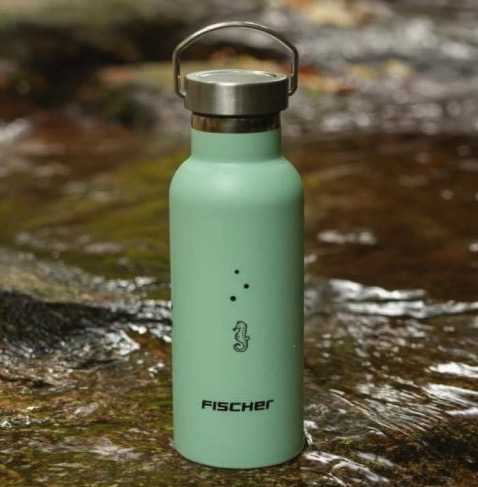 „Die FISCHER Trinkflasche ist komplett aus Edelstahl und mit einer griffigen Beschichtung versehen, sie fasst bis zu 500ml an Flüssigkeit. Die Trinkflasche lässt sich einfach per Drehverschluss öffnen und schließen.