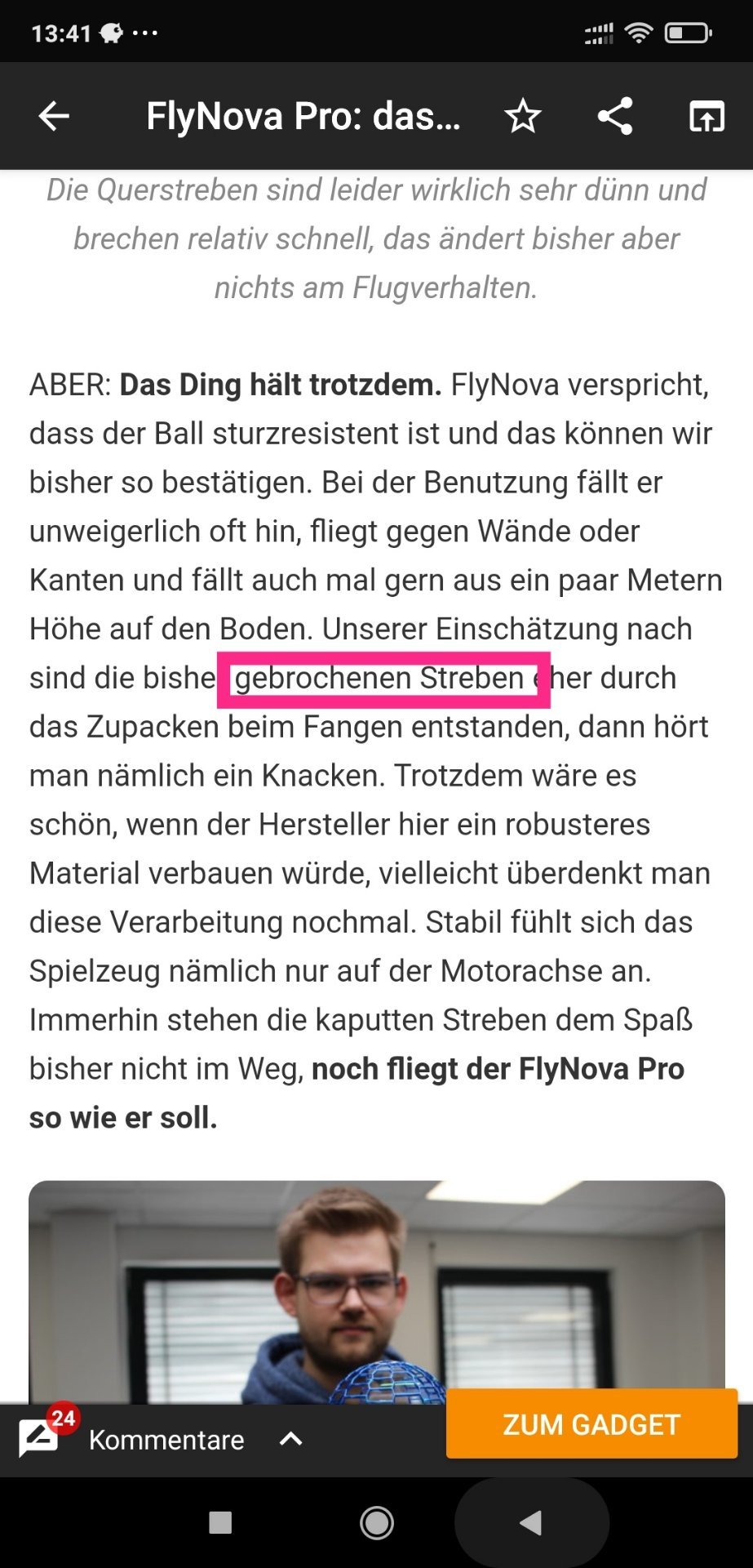 Hoerbi 08.11.2020, 02:28Danke für das Angebot. Aber das Statement haben ja schon die"Jungs" von China Gadgets gegeben, das beim "Fangen" Streben brechen können.
