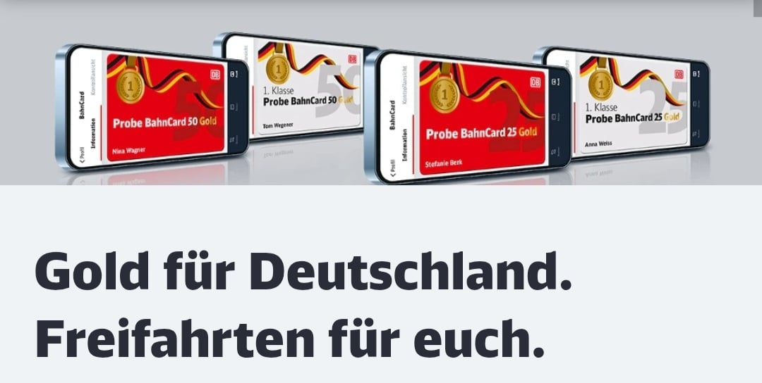 Denn: Holt Deutschland bei den olymischen Winterspielen in Milano Cortina Gold,- fahrt ihr, als Inhaber dieser Bahncard,am Folgetag, im Fernverkehr ( ICE, ECE, IC, EC ) – gratis !