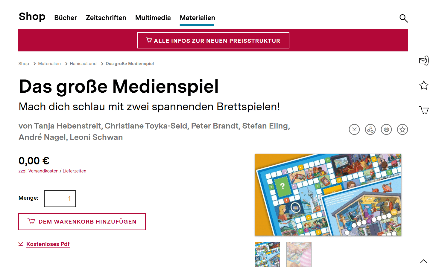 Bei der Bundeszentrale für politische Bildung gibt es zurzeit ein Brettspiel zum Thema Medien in HanisauLand. Einfach in den Warenkorb legen und Eure Adressdaten eingeben. Schon macht sich das Spiel kostenlos auf den Weg zu Euch.