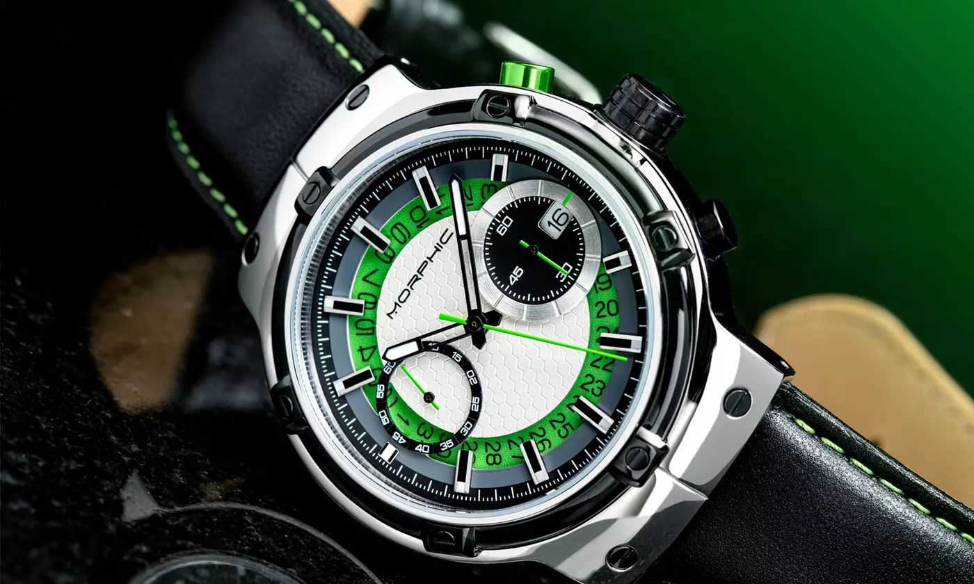 Groupon: Morphic M91 Series Chronograph Echtlederuhr mit Datum in der Farbe nach Wahl