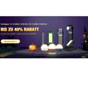 Vielleicht ist die Info ja etwas früh, aber Taschenlampen-Freaks bekommen am 31.10.im Halloween-Sale eine günstige Gelegenheit sich eine OLIGHT Taschenlampe zu kaufen und ggf. ein kostenloses T-Shirt zu zu nehmen. Es fallen immer 5,95€ Versandkosten an.