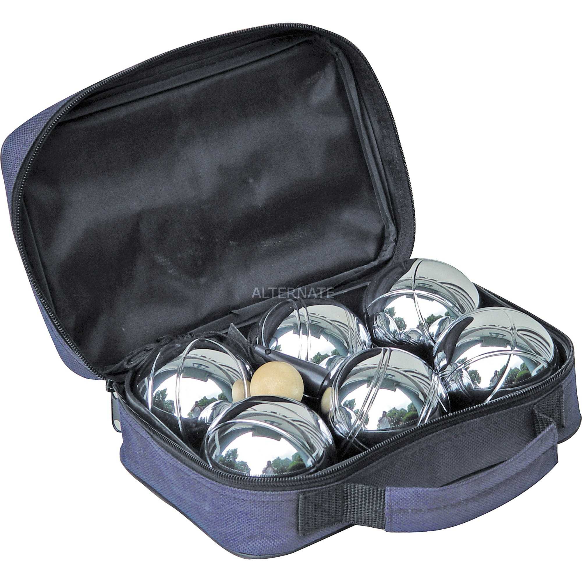 - 6 Metalkugeln, 1 Zielkugel, 1 Maßband (Leine), 1 Magnet (zur Aufnahme der Spielkugeln) und Nylontasche