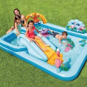Bei Amazon bekommt ihr nun für 37,95€ inkl. Versand das Intex Wasser-Playcenter „Jungle Adventure“ für Kids – quasi ein Planschbecken mit Bespaßung, also Rutsche, Tieren usw.