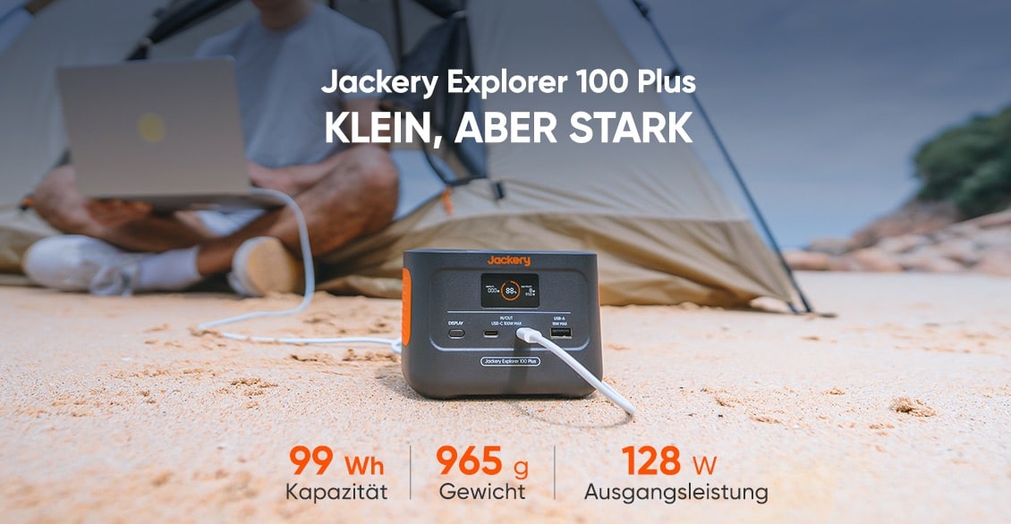 Süße kleine Powerstation! Die tragbare Powerstation Explorer 100 Plus von Jackery könnt ihr euch gerade für nur 127,49€ bestellen. Einfach den Code JACKERYE100 nutzen, und ihr bekommt sie zu dem Preis. Bis max. 19.03., dann ist Schluss mit dem Schnäppchenpreis.