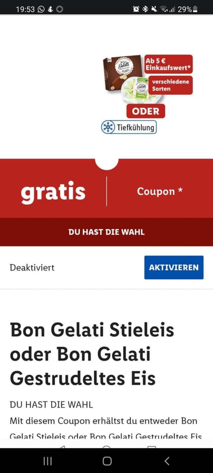 Bei Lidl Plus bekommt ihr ab 5€ Einkaufs Wert Eis kostenlos.