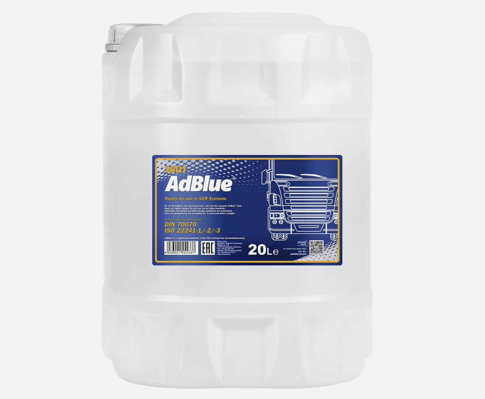 Mannol AdBlue® ist eine hochreine 32,5 %ige Harnstofflösung, die als zusätzliche Arbeitsflüssigkeit in Diesel-Pkw und Lkw mit SCR-Technologie (Selective Catalytic Reduction) eingesetzt wird. Die Zusammensetzung von AdBlue® ist in der DIN 70070 festgelegt. Der Einsatz solcher Systeme optimiert die Motorleistung, reduziert den Ausstoß von schädlichen Partikeln in den Abgasen und erfüllt die Umweltnormen Euro 4, Euro 5 und Euro 6. AdBlue® ist ein eingetragenes Warenzeichen des VDA Verband der Automobilindustrie e.V.