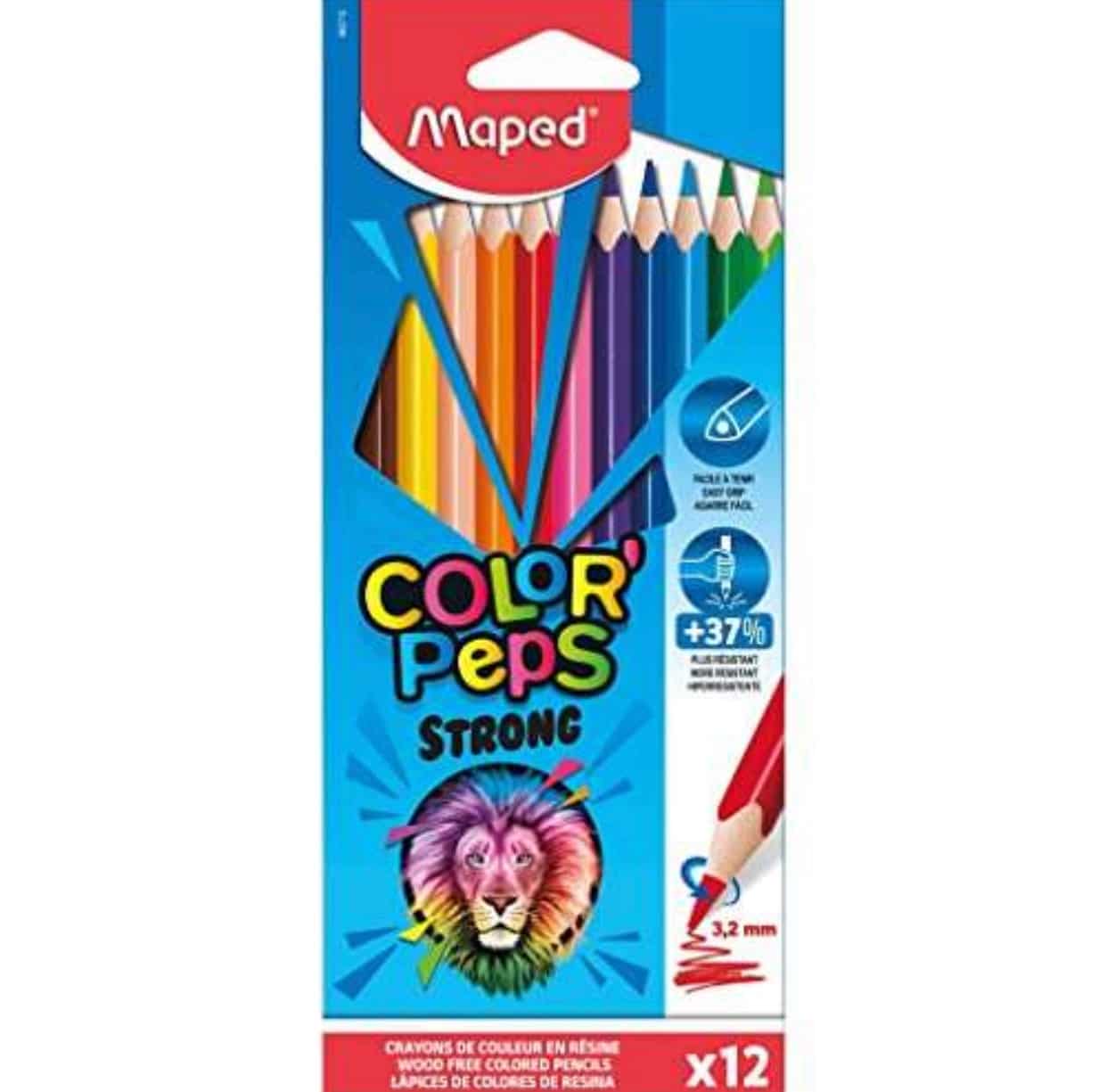 „Die besonders widerstandsfähigen Strong Buntstifte von Maped: Mit ihrer Mine mit einem Durchmesser von 3,2 mm halten die Bleistifte STRONG von Maped auch den hartnäckigsten Kindern Die Minen brechen nicht mehr, die Bleistifte sind leicht zu spitzen und halten lange Zeit. Kräftige und intensive Farben, überall und jederzeit dank der Stifte der Color Peps Strong-Serie Für die Vorbereitung der Einschulung, für den Urlaub oder einfach nur als Geschenk. Color’Peps by Maped bietet eine Reihe von Produkten und Farben, die sie für das Glück der Kinder begeistern.
