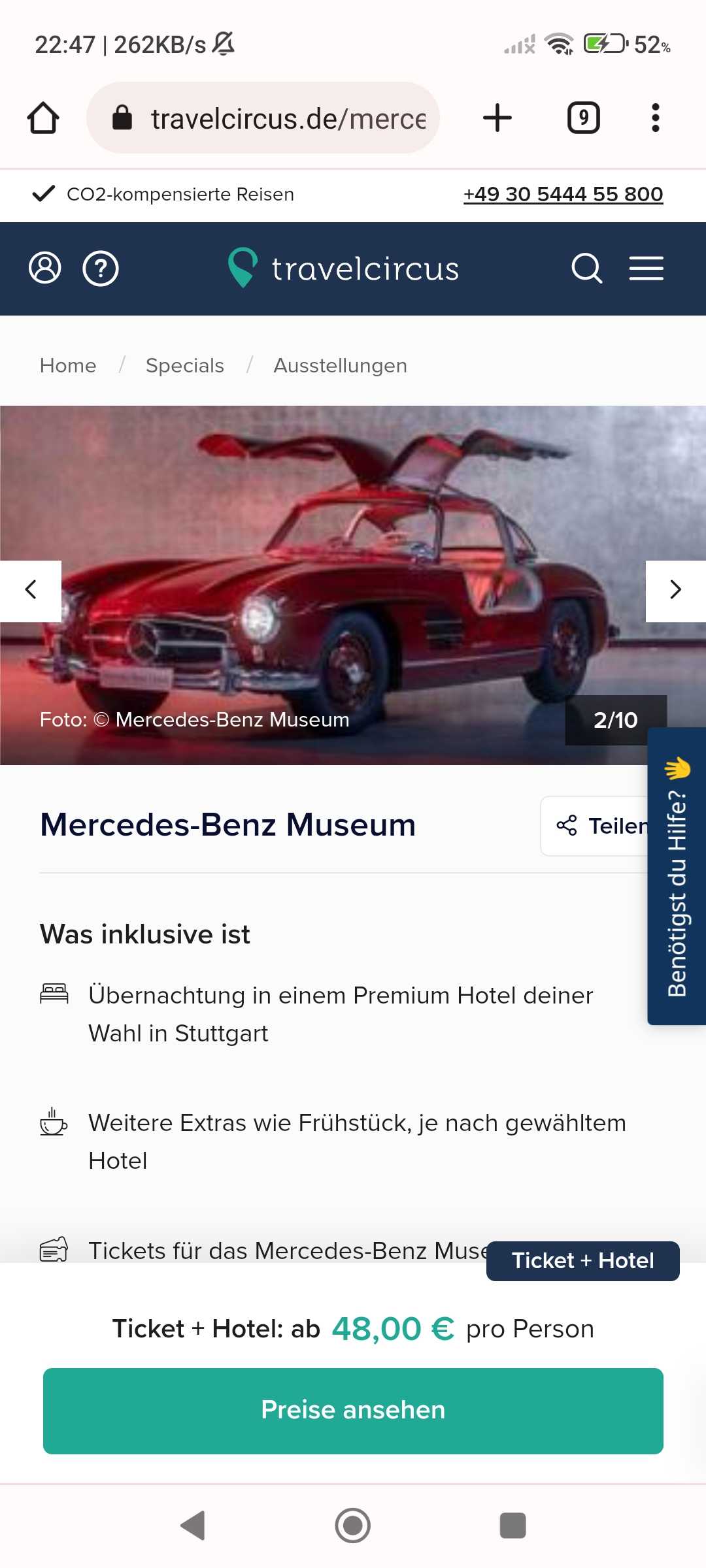 Es gibt wieder ab 48 Euro ein paar Termine für das Mercedes Benz Museum in Stuttgart inklusive einer Übernachtung in einem Hotel .