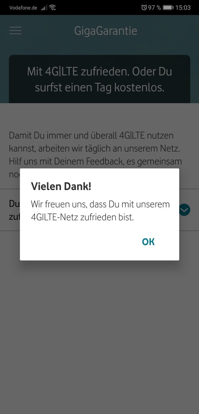 frank02302 10.08.2018, 15:112 Dinge fehlen in der Beschreibung. Erstens muß man unzufrieden mit dem Empfang sein und zweitens gilt es nur 24 Stunden. Vodafone wird diese Freischaltungen im Auge haben und es bestimmt nicht jeden Monat zulassen. Das Angebot soll die Kundenzufriedenheit erhöhen.