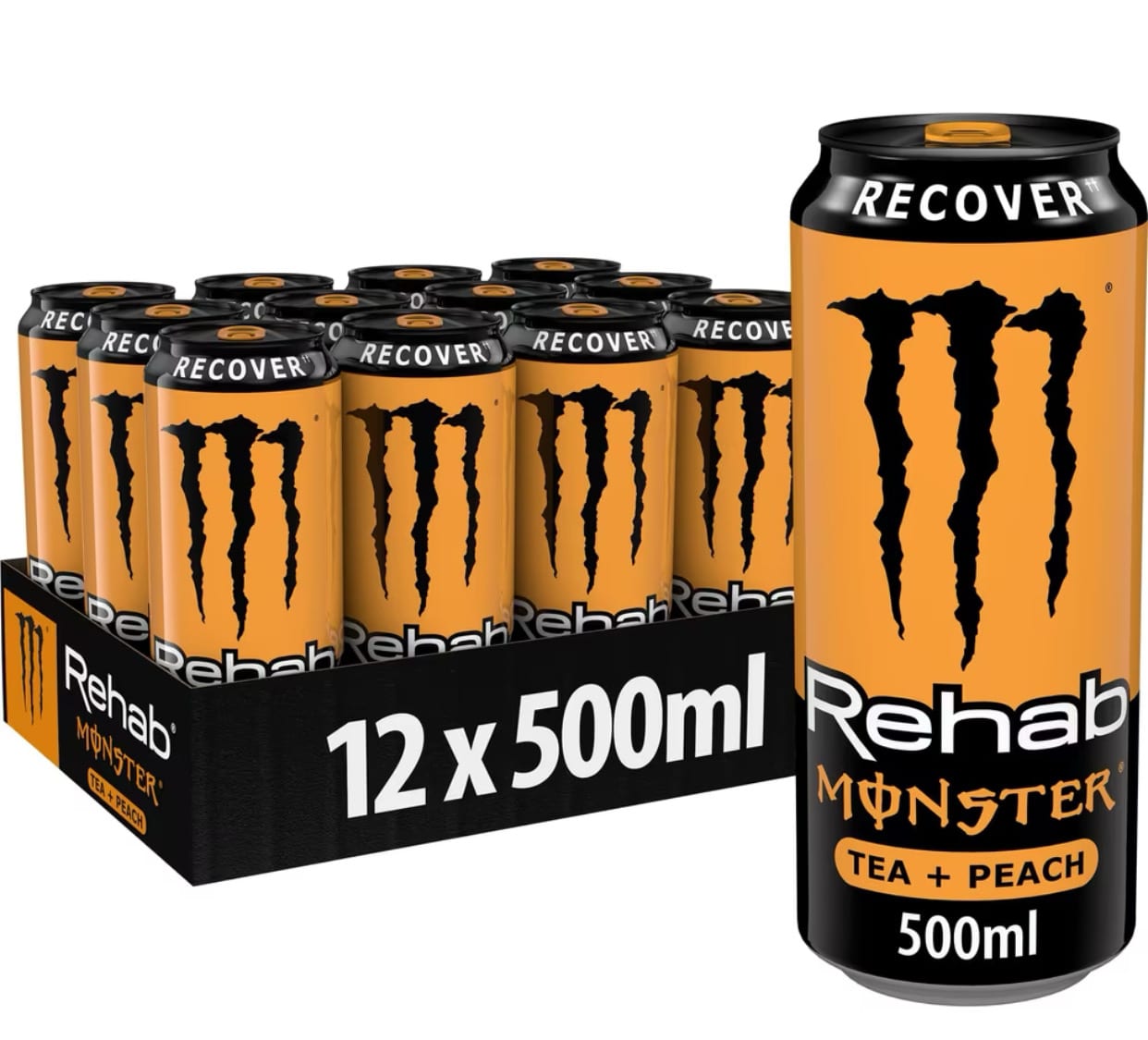 - Lieferumfang: 12 x 500ml Monster Energy Rehab Peach – Energy Iced Tea mit Pfirsichgeschmack