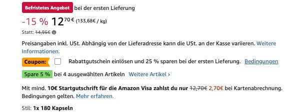 Per Prime-Versand, 25% Coupon und Spar-Abo zahlt ihr nur 9,52€