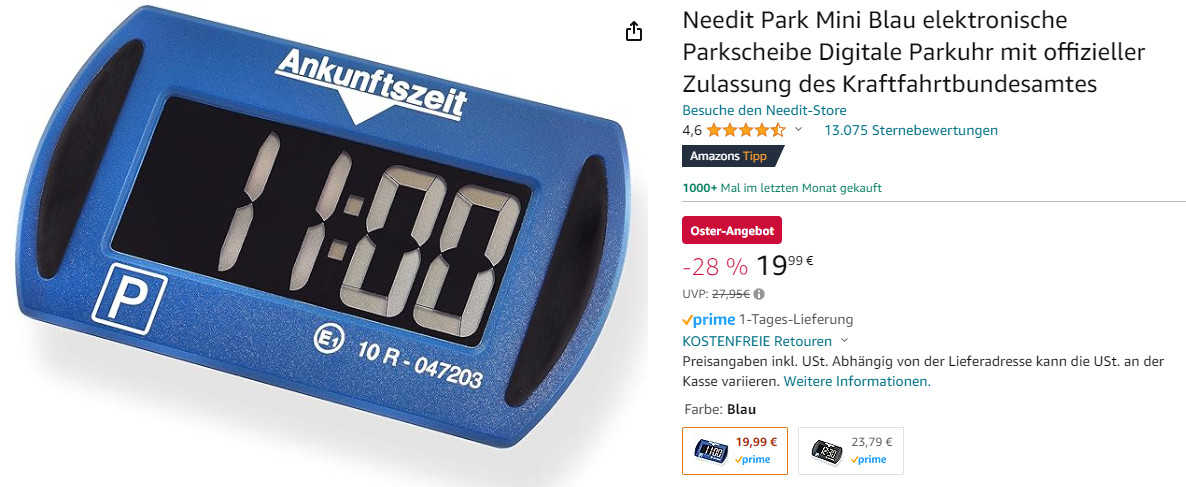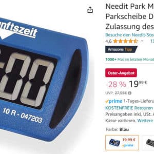 Ähnlich dem „[Bestpreis] ooono Park – Elektronische Parkscheibe mit Zulassung fürs Auto“, aber mit 28% Rabatt. 19,99 statt 27,50.
