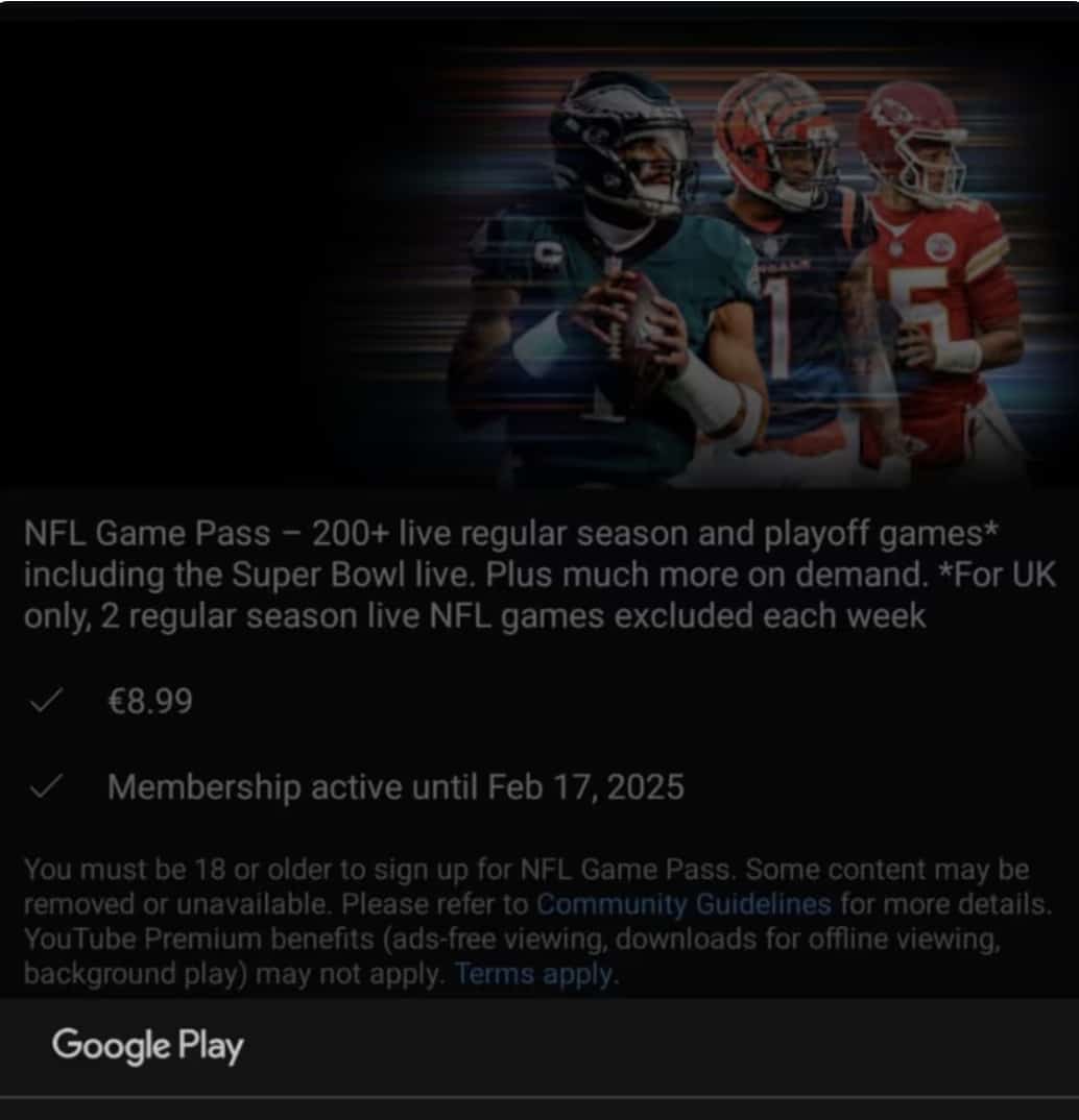 Preisfehler?! 🏈 NFL Gamepass bis 17.2.2025 (ganze Saison einmalig 8,99€)