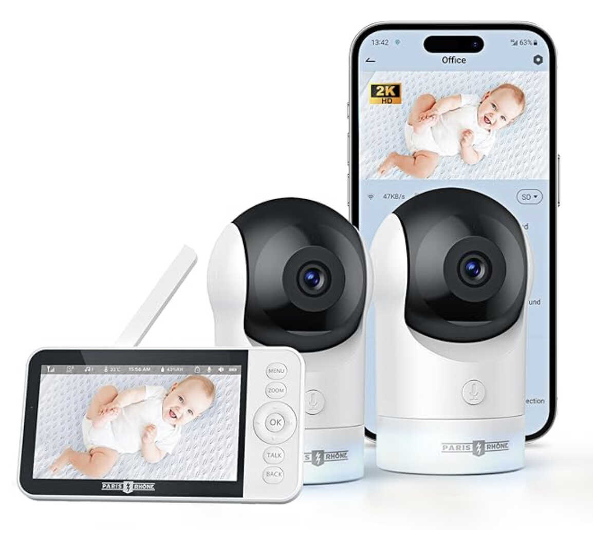 PARIS RHÔNE Babyphone mit 2 Kameras, 5″ WiFi Babyphone mit APP