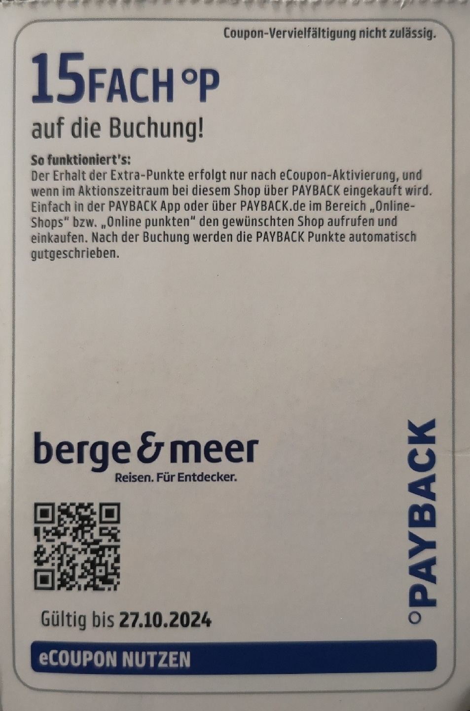 PAYBACK 15 FACH P° auf die Buchung bei berge & meer!