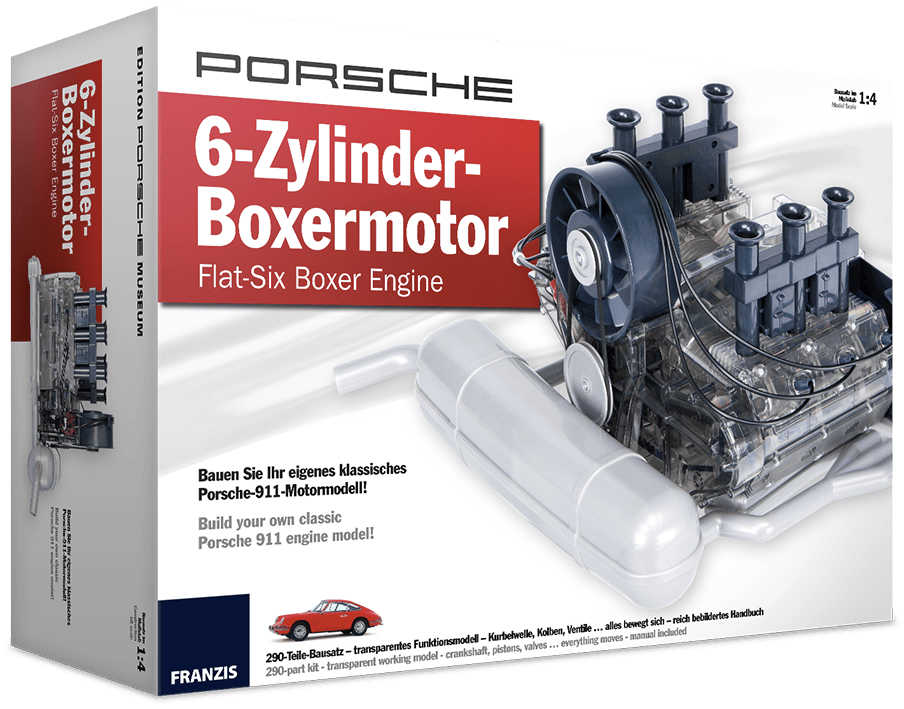 Beim Franzis Verlag ist gerade der Bausatz für einen Porsche Boxer Motor im Angebot für nur 90€ inkl. Versandkosten.