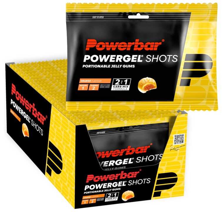 Powerbar – PowerGel Shots – High Carb Energie Gummis (24x60g, Geschmack: Orange, Vitamin B6, koffeinfrei)