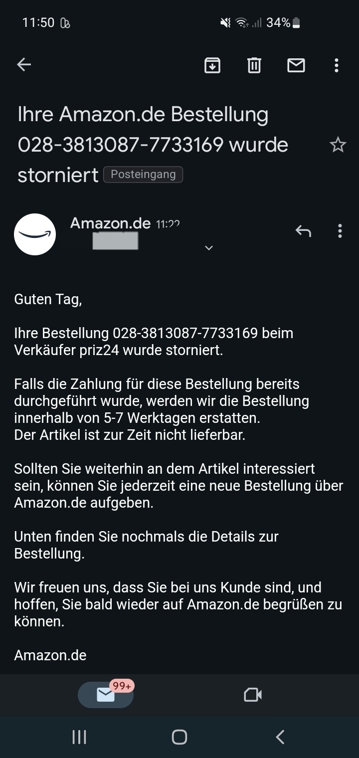 HeWa (Gast) 07.10.2023, 11:51Nach der Bestellung kam Storno von Amazon.