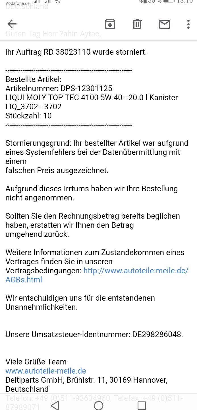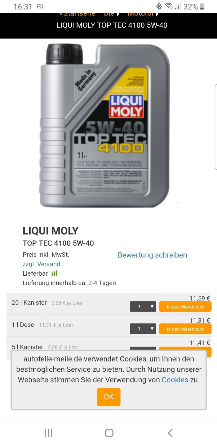 marbul 24.03.2019, 13:12Selber Hersteller: 10w 40 / 20l Kanister für 9,69€