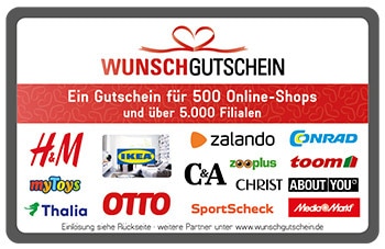 Aber nur bei den festen 15€, 25€ und 50€ Gutscheinkarten. Achtung: Gilt nicht bei den variablen Gutscheinen.