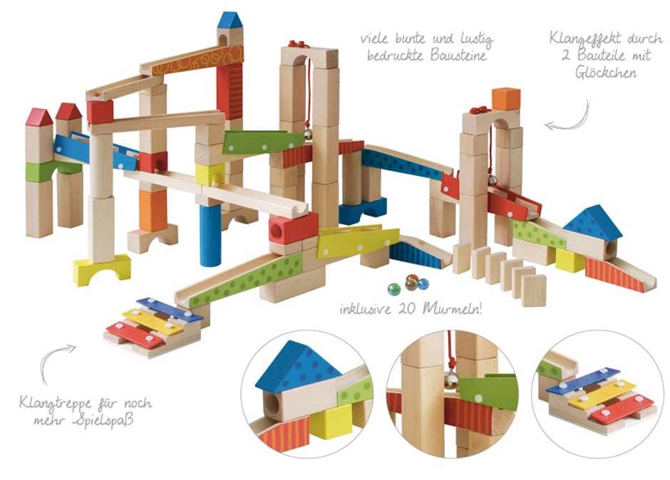 - DIE ROBA KUGELBAHN AUS HOLZ IST VARIABEL AUFBAUBAR und bietet kleinen Baumeistern bunten Bauspaß und unendlich viele Möglichkeiten, eine neue spannende Murmelbahn aufzubauen.