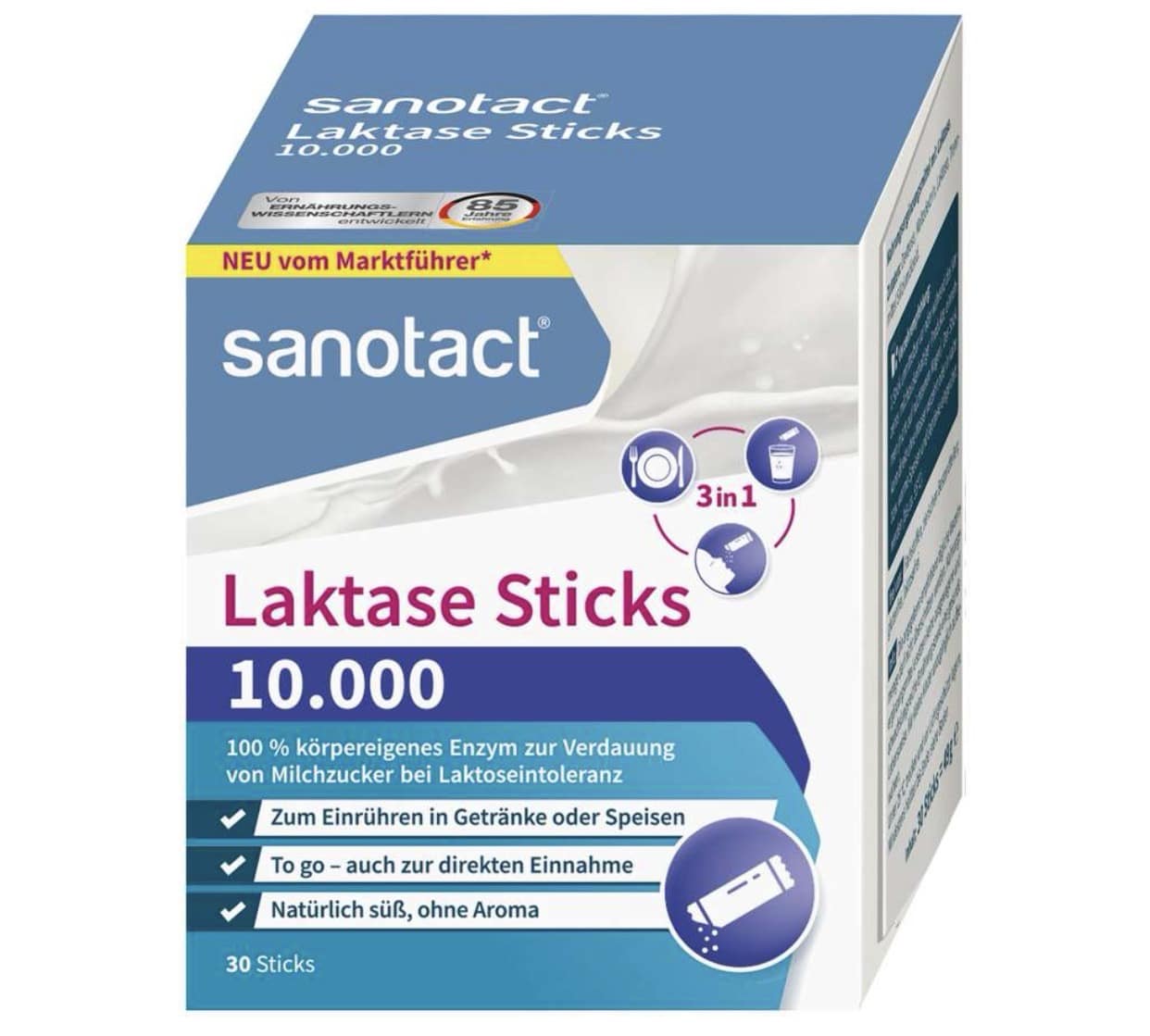 sanotact Laktase Sticks 10.000 – 3-in-1 Laktase Pulver 30 Sticks für 4,75€(statt 8,45€)