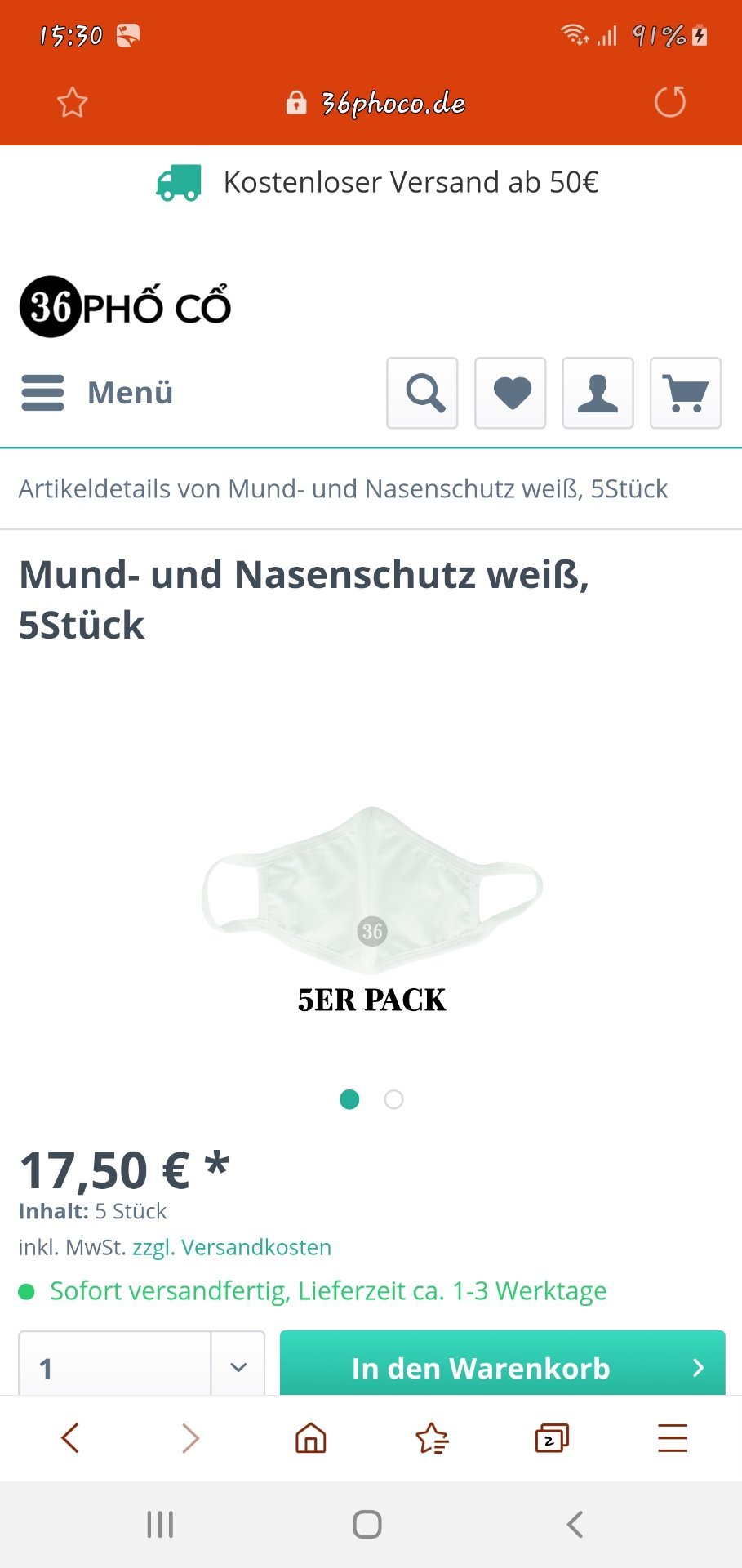 Ein guter Deal und aktuell noch lieferbar. Immer Vergleich wie viel andere Masken kosten, sind 15€ für 5 Masken ein fairer Deal.