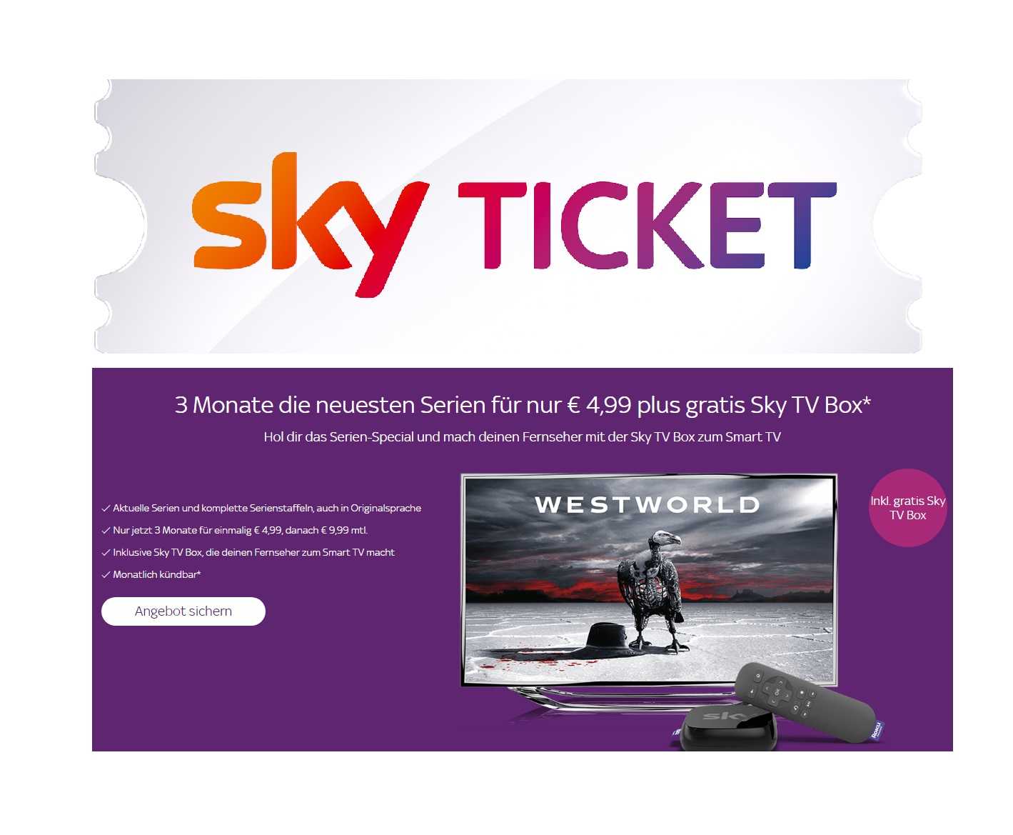 Diesmal gibt es folgendes Sky Ticket: 3 Monate die neuesten Serien für nur € 4,99 plus gratis Sky TV Box!