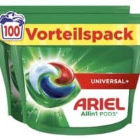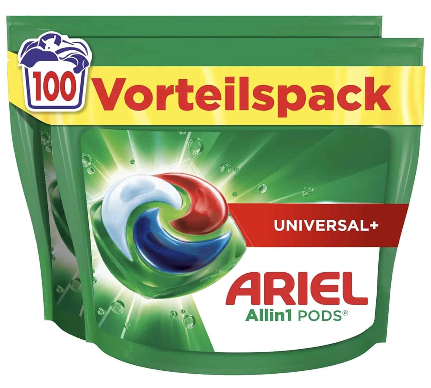 Quick an dirty bzw. dann nicht mehr dirty: Bei Amazon gibts im SparAbo die Ariel Waschmittel Pods All-in-1 Universal+ Kapseln mit 100 WL für nur 22,99€ via Prime Versand. Oder halt 0,23€ pro WL – TOP!