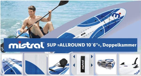 mistral SUP-Board Doppelkammer mit viel Zubehör bei LIDL