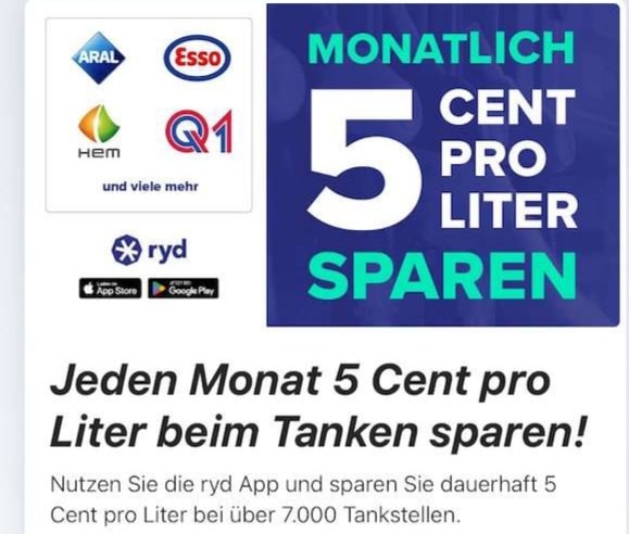2 Cent pro Liter beim Tanken sparen über die ryd App (bis 40 Liter)