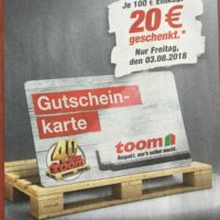 [Vorbei]Toom Baumarkt: am 03.08. 20€ Gutschein erhalten für 100€ Einkauf