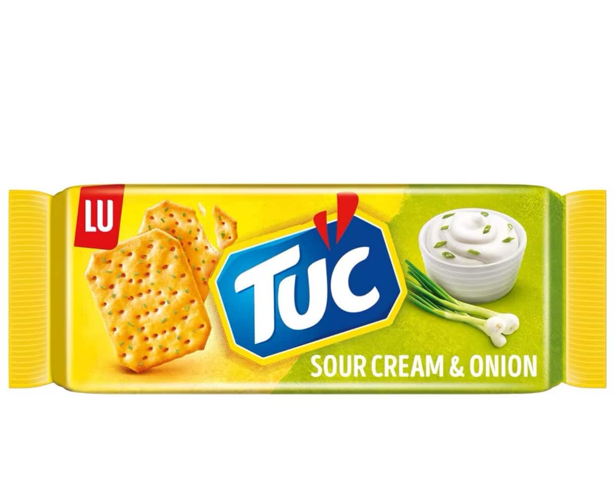 • TUC Sour Cream & Onion Cracker vereinen goldgelbe Knusprigkeit mit dem cremig-würzigen Geschmack von Sauerrahm und Zwiebeln für echte Snackliebhaber