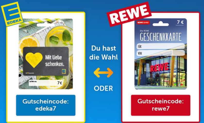 Den Gutscheincode edeka7 oder rewe7 dazu einfach im Bezahlvorgang eingeben.