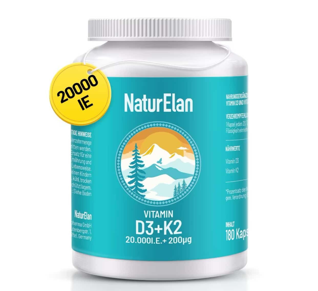 Vitamin D3 k2 kapseln hochdosiert – 20.000 I.E. + Vitamin K2 MK7 200 mcg pro Dosis, 180 Kapseln für 7,64€(statt 12,99€)