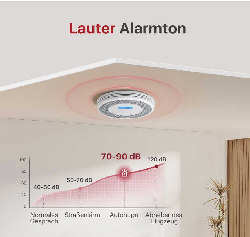 - Barrierefrei: Dank der Sprachwarnungen ist dieser Melder auch für Kinder geeignet. Zudem können Kinder dank des LCD-Displays und der LED-Statusleuchte problemlos informiert werden